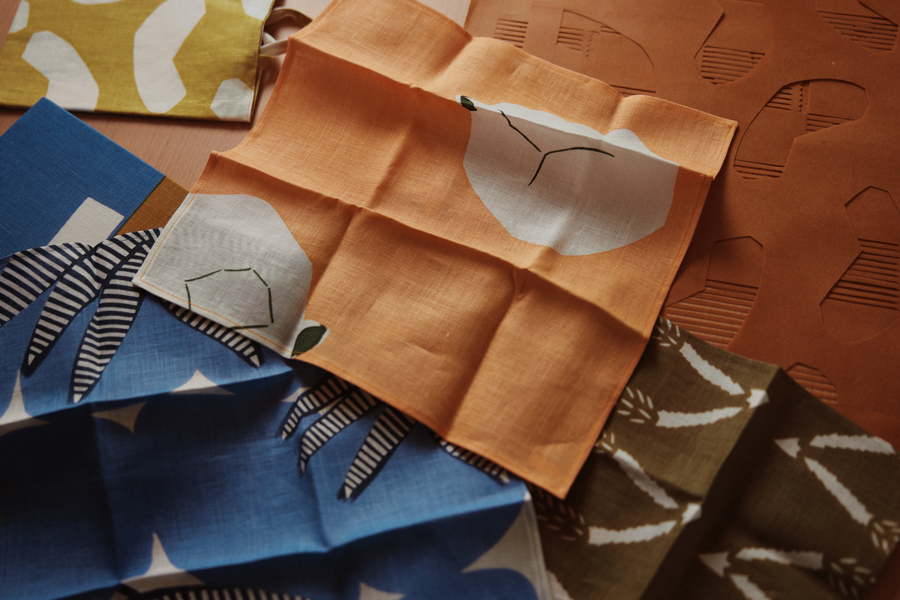 It involves carving patterns into paper stencils, placing them on fabric, and brushing dye through the cut areas. This process is repeated layer by layer to build depth and nuance in the design. Katazome has long been used for textiles that accompany everyday life — such as kimono, furoshiki wrapping cloths, and small household items — bringing quiet beauty into what people touch and use each day.