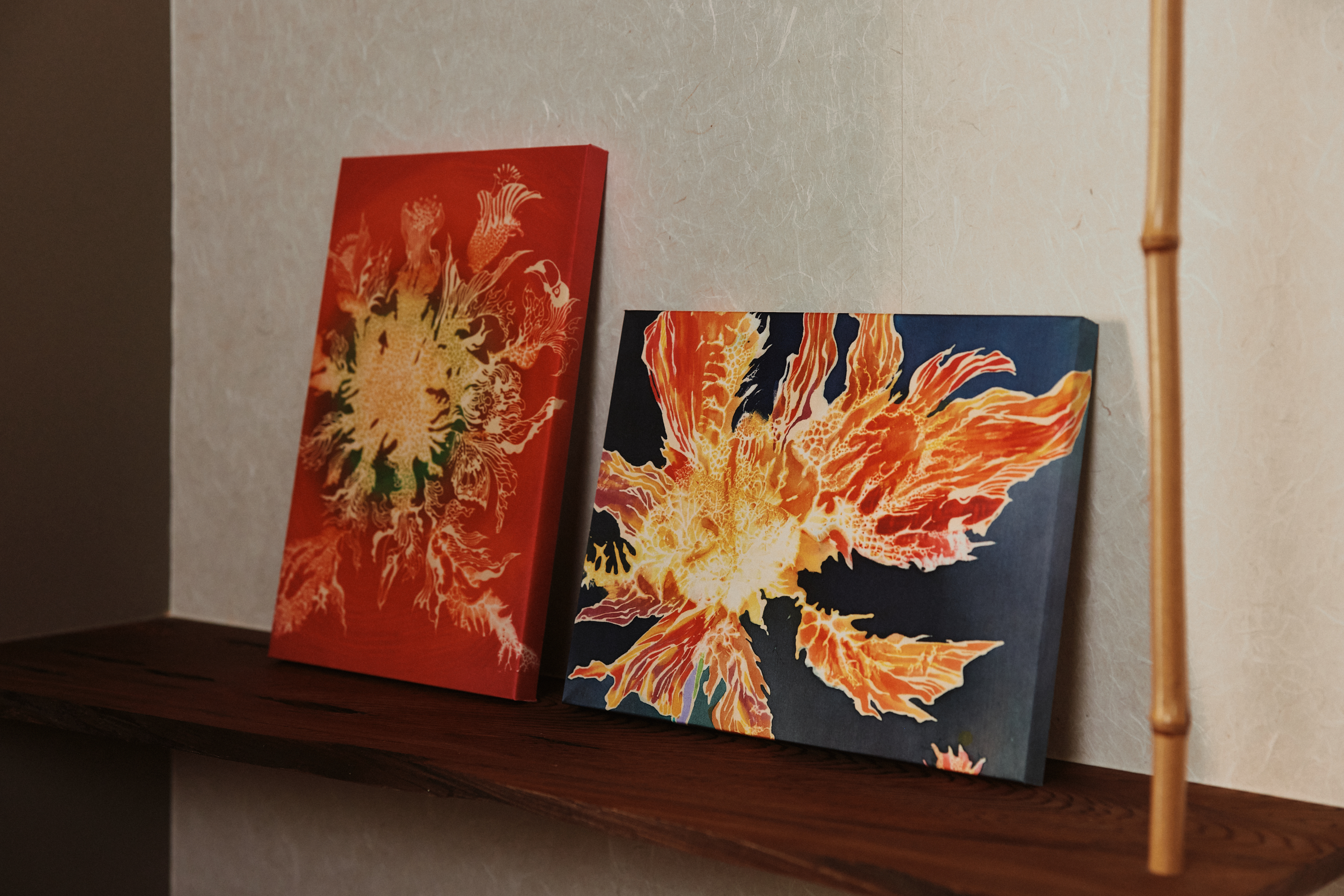 Yuzen dyeing is a traditional Japanese technique defined by five vibrant colors, carefully layered by hand.